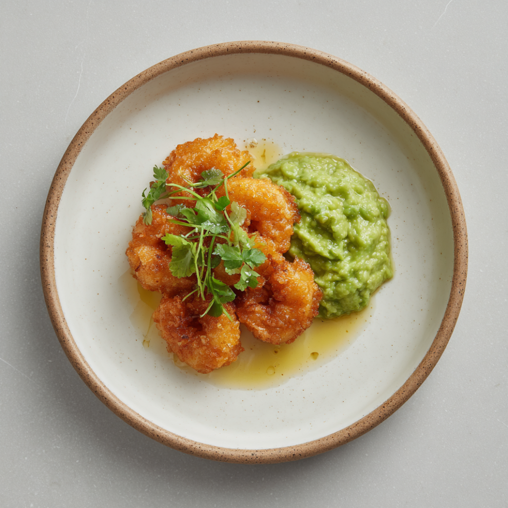 Жареные в панировке креветки с гуакамоле